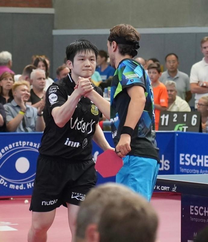 北京时间9月6日,萨尔布吕肯乒乓球甲级俱乐部在客场挑战巴特克尼格斯霍芬的比赛中,樊振东作为一单出战3-1(11-5、11-3、7-11、11-6)战胜泽利科,迎来德甲首胜。