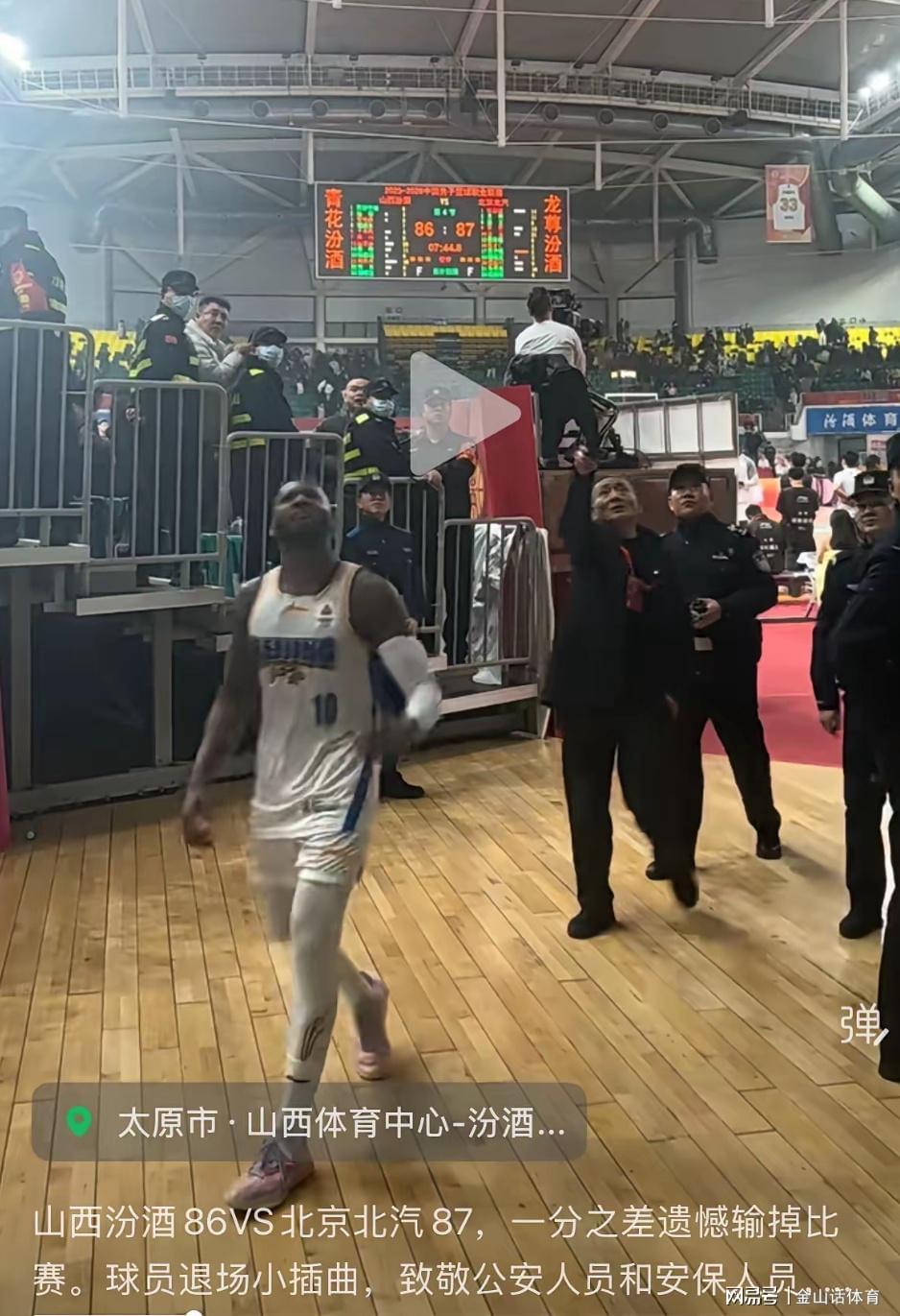 此外,在比赛结束后,当北京队球员离场上,看台上有球迷竟然冲球员吐口水,在北京队提出抗议后,警察和保安上前进行了制止……